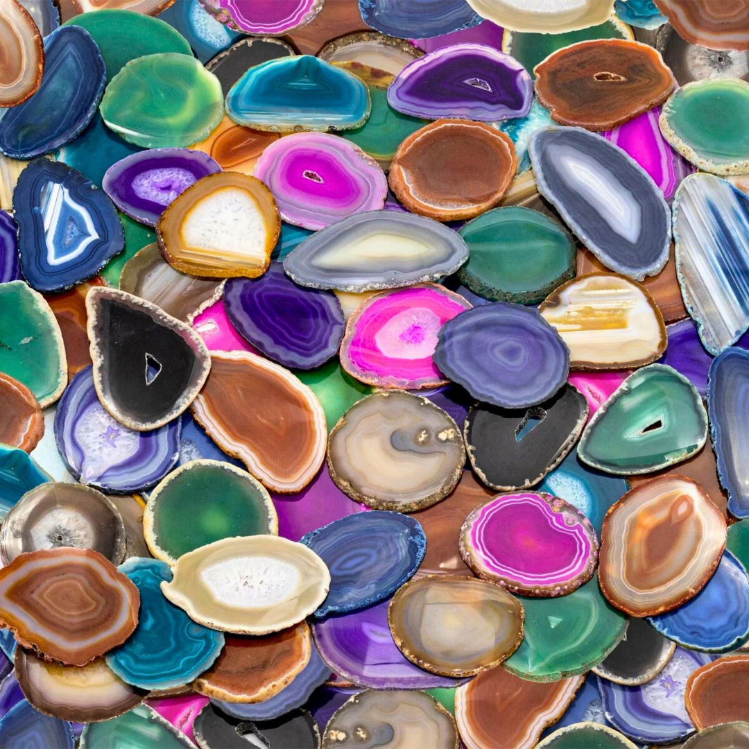 Explore our extensive pendant selection, featuring carved gemstone pendants, raw crystal pieces, druzy pendants, sterling silver designs, and custom wire-wrapped options. We also offer various grade A agate slices, perfect for individual purchases or bulk orders.
