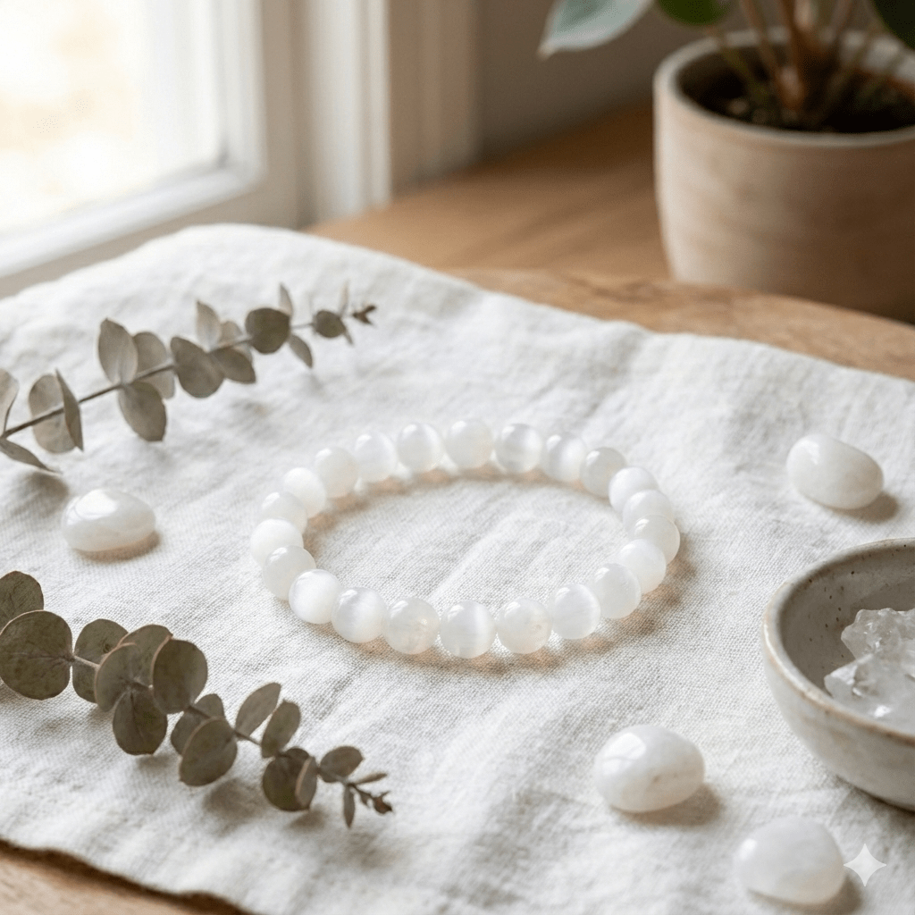 Selenite Round Bead Stretch Bracelet (8 mm)
