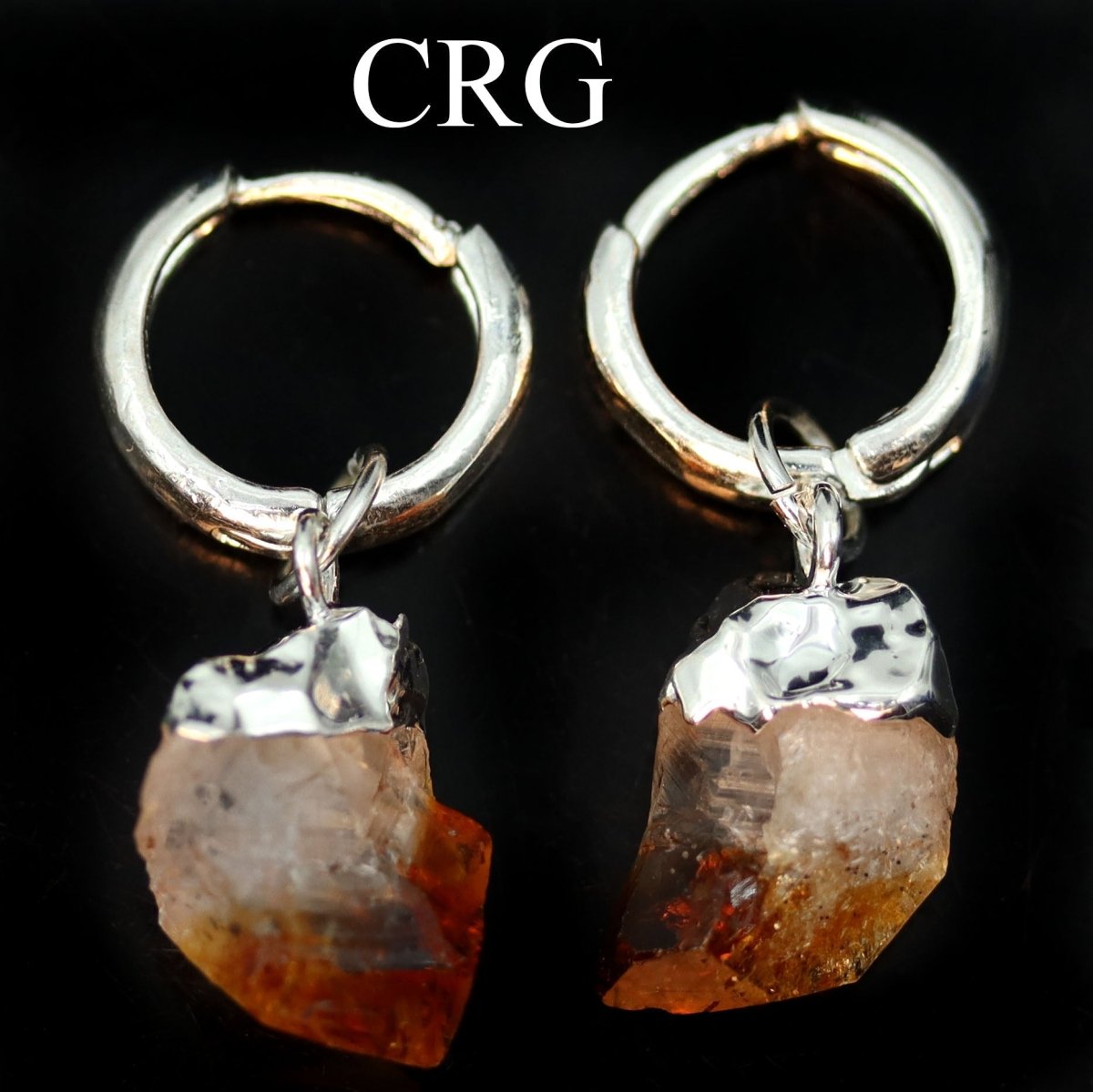 Citrine Point Earrings with Silver Plated Hoop Closures (1.25 Inches) (1 Pair)