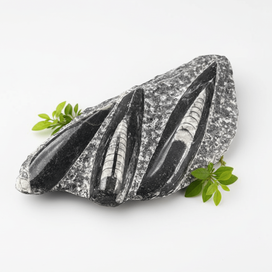 Orthoceras fossils are formed through the gradual replacement of the original organic material by minerals, such as calcite or silica, during the fossilization process, preserving the shell-like structures of ancient cephalopods.
