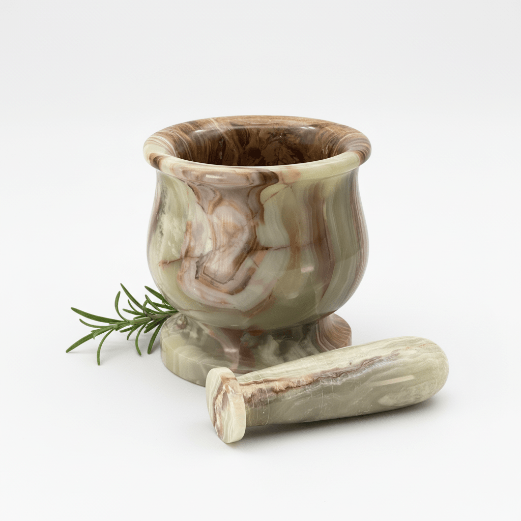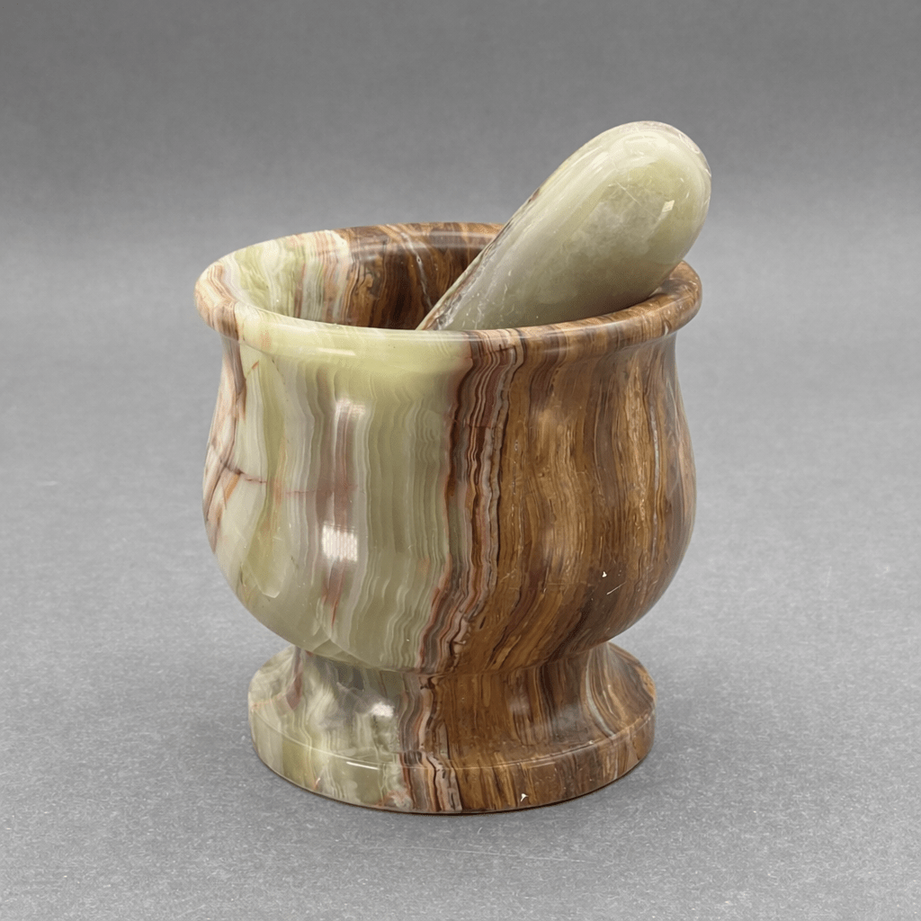 Despite the name, onyx is actually an aggregate variety of calcite that was recently found in Pakistan. It is formed from layers of different calcite marbled together. Onyx Calcite is a striking variety of calcite that exhibits beautiful banding, often resembling traditional onyx but with a softer composition. Like all calcite minerals, it is a form of calcium carbonate (CaCO₃). The banding is formed by the deposition of calcium-rich water in caves, hot springs, or sedimentary environments over thousands to millions of years. The layers result from varying mineral impurities, including iron oxides, which create shades of yellow, brown, white, pink, and even green.