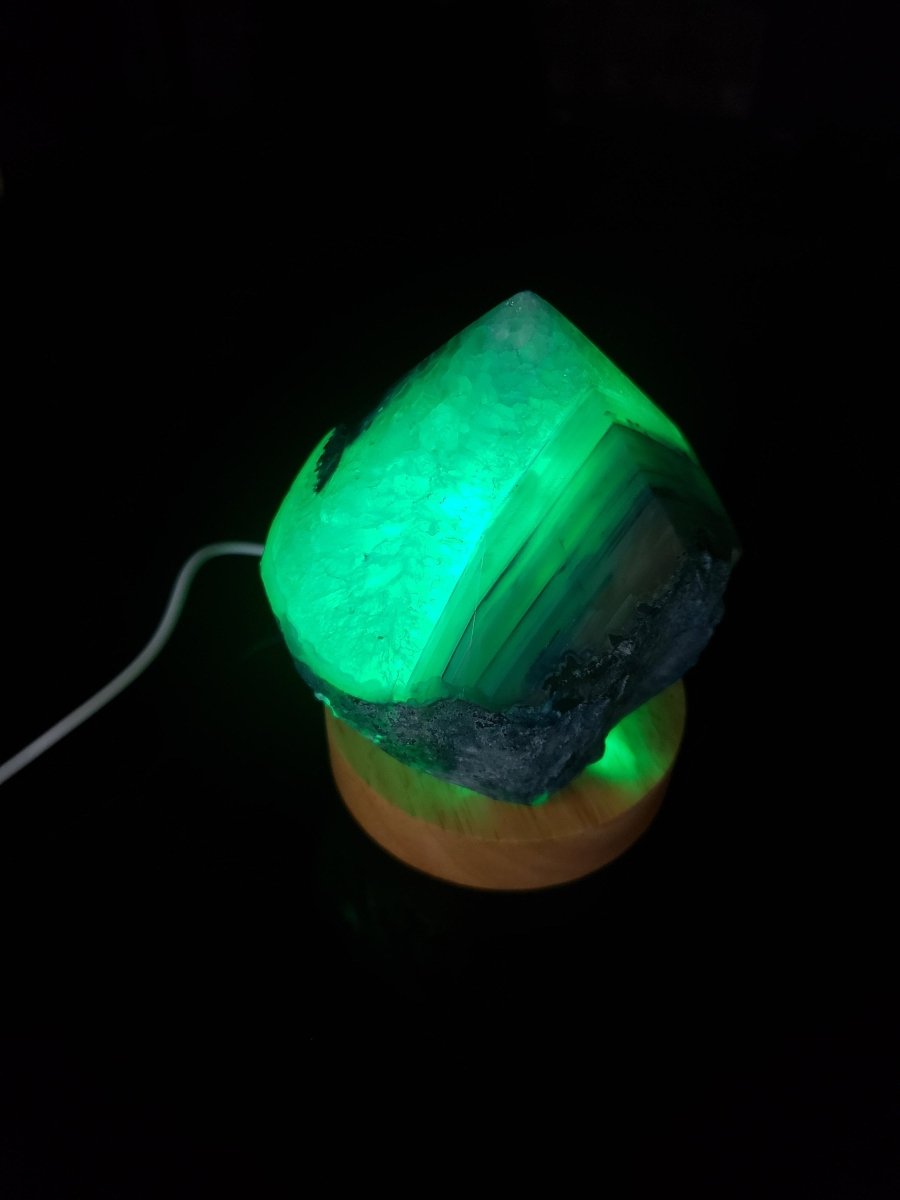 Agate is a banded variety of chalcedony that forms inside pockets of metamorphic and volcanic rock. The initial layer and the surrounding minerals and conditions influence subsequent layers, giving agate its wide variation in appearance. Agate can also bond with quartz crystal while forming, leading to distinctive white banding and exposed crystal druzy.