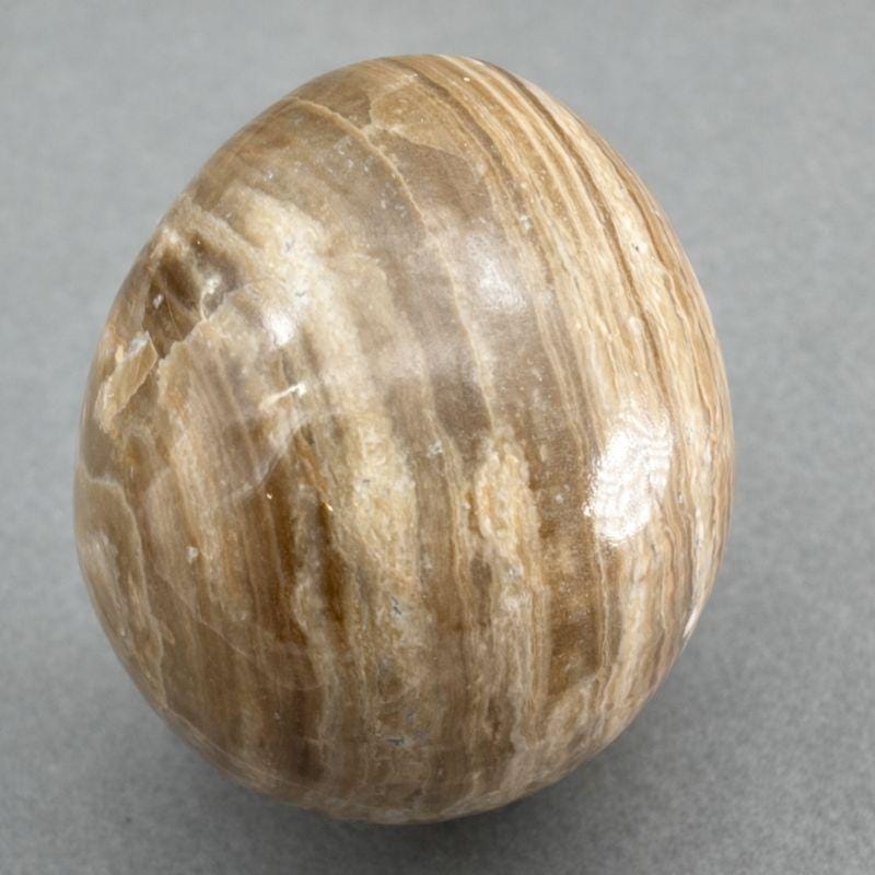 Yellow-banded onyx, despite the name is a variety of banded calcite. The main body of the stone is brown aragonite, with included bands of yellow and black calcite giving the stone a distinctive striped appearance.