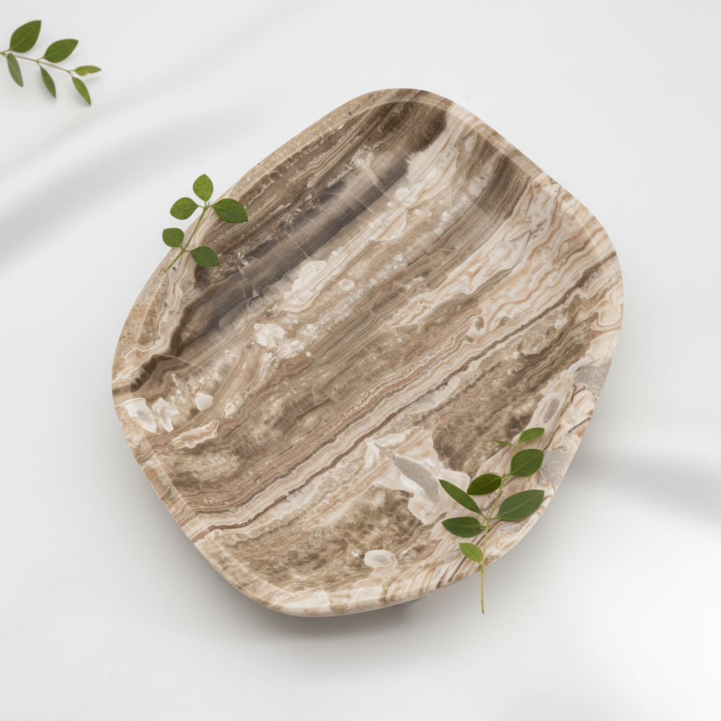 Despite the name, onyx is actually an aggregate variety of calcite that was recently found in Pakistan. It is formed from layers of different calcite marbled together. Onyx Calcite is a striking variety of calcite that exhibits beautiful banding, often resembling traditional onyx but with a softer composition. Like all calcite minerals, it is a form of calcium carbonate (CaCO₃). The banding is formed by the deposition of calcium-rich water in caves, hot springs, or sedimentary environments over thousands to millions of years. The layers result from varying mineral impurities, including iron oxides, which create shades of yellow, brown, white, pink, and even green.
