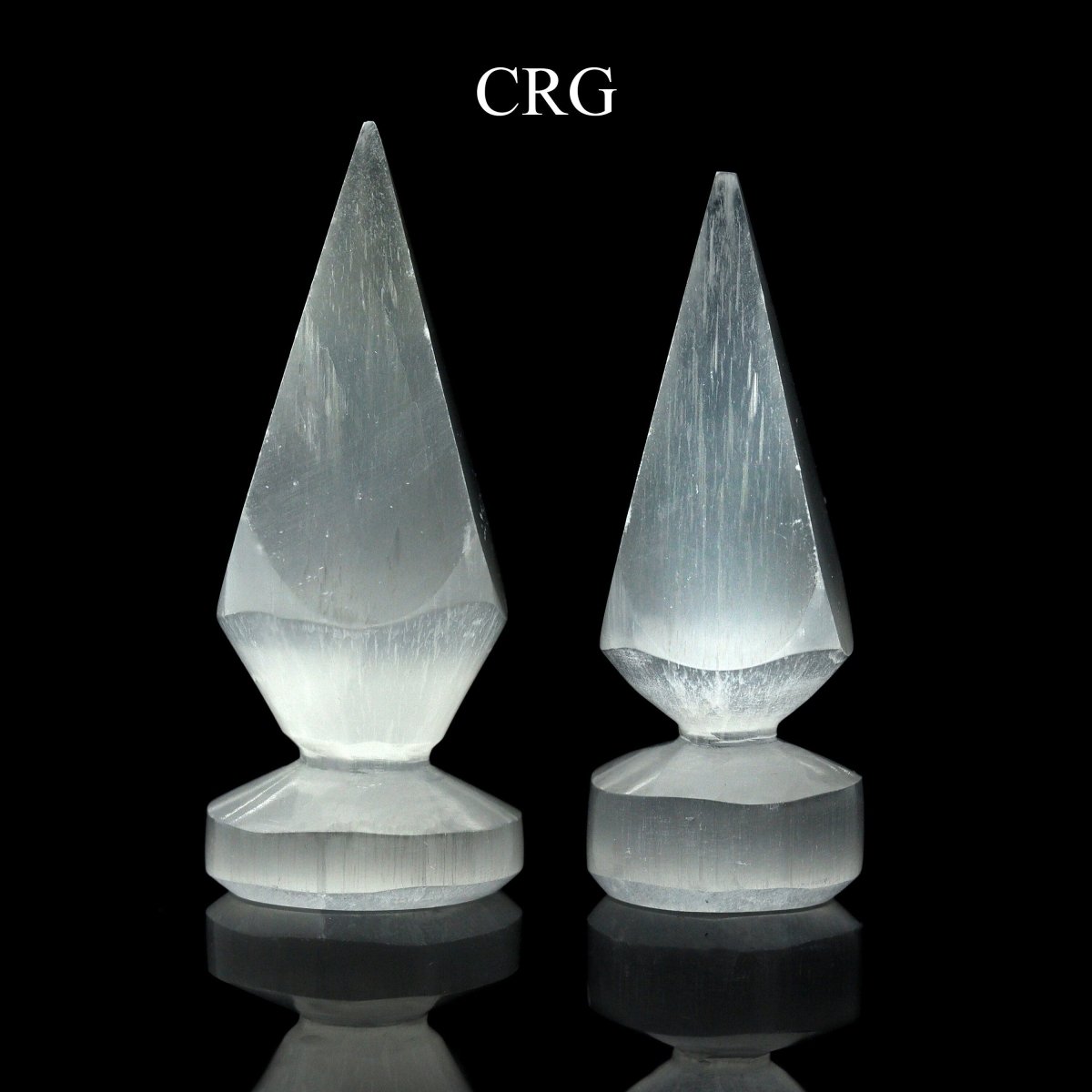 Standing Crystal Selenite Obelisk Points with Round Bases