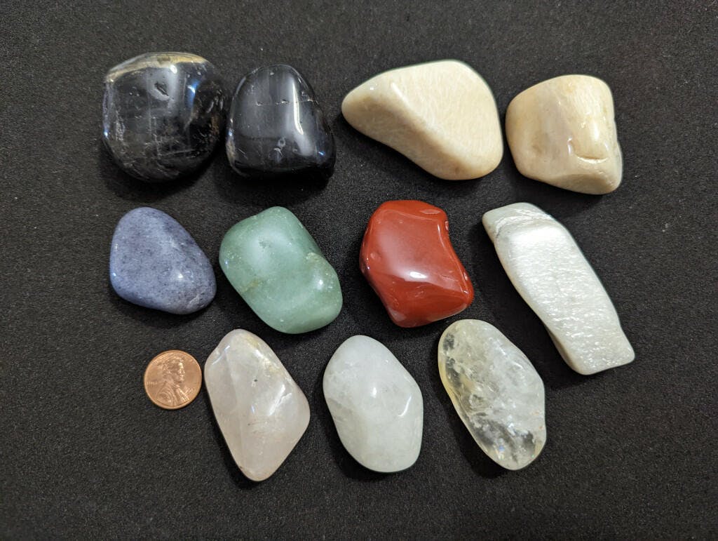 I have hundreds of tumbled stones but out of all the shops I've purchased from, Crystal River Gems have always been my favorite in terms of size and quality. They are always way bigger than I expect and absolutely stunning. I ordered a 1lb lot pictured with a coin for size reference. Beautiful stones!