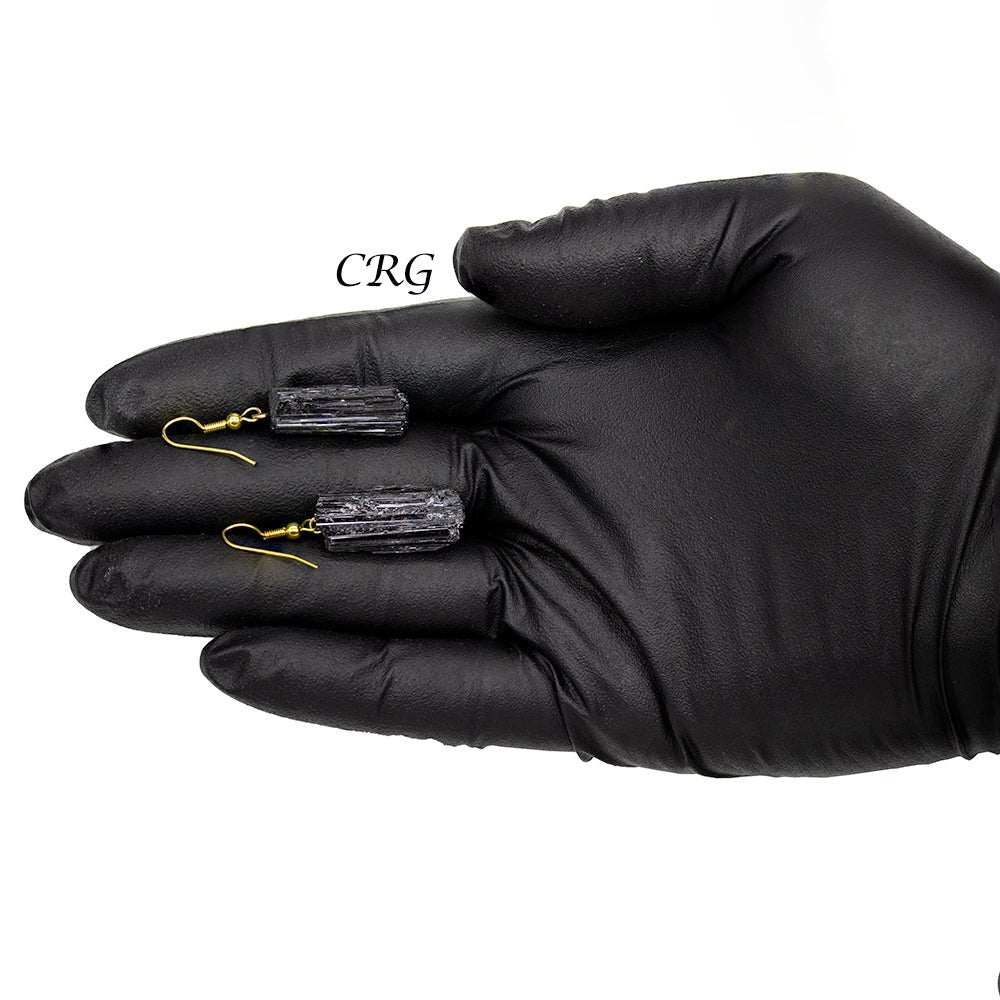 Wholesale Raw Black Tourmaline Earrings with Gold Plated Wire